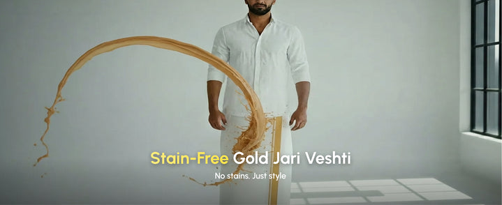 Stain Free Shirt (Half Sleeve) + Stain Free Dhoti (Gold Jari Border) Combo