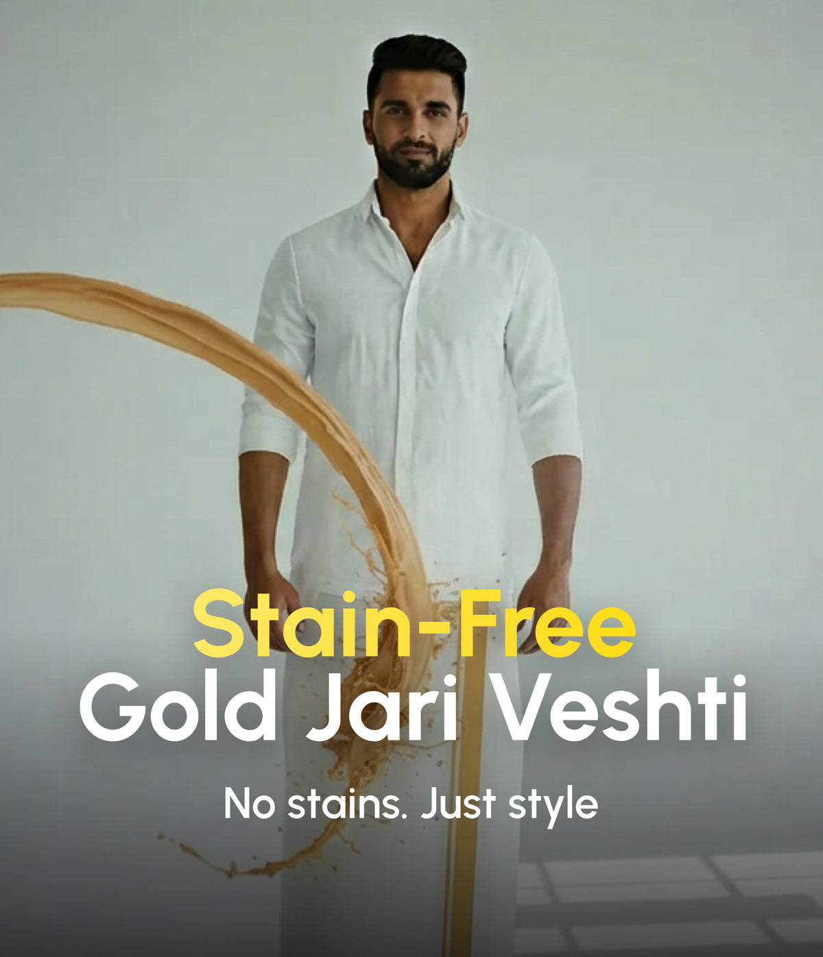 Stain Free Shirt (Full Sleeve) + Stain Free Dhoti (Gold Jari Border) Combo
